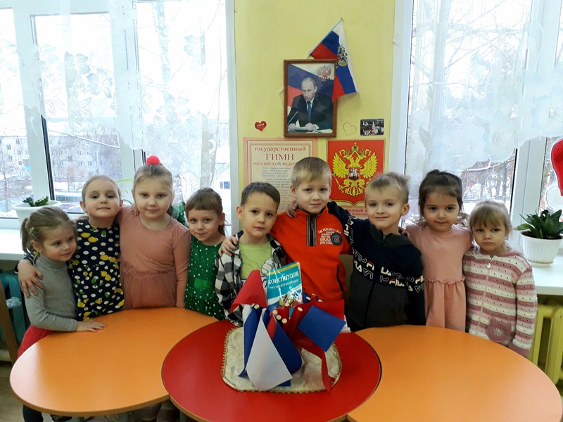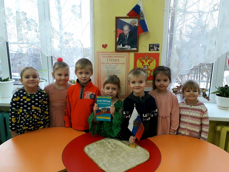 12 декабря празднуется важнейший из государственных праздников — День Конституции Российской Федерации. Уже в дошкольном возрасте мы знакомим детей с основными положениями Конституции, воспитываем любовь, уважение и гордость к Родине. В этот праздничный день воспитанники группы " Улыбка " узнали, что Конституция - это самый главный закон страны, в котором описаны все права и обязанности граждан страны. Его обязаны соблюдать все : и Президент страны, и взрослые , и дети. А мы все- граждане России.